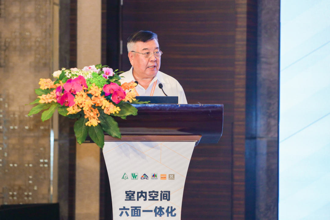 中国林业科学研究院木材工业研究所副所长、中国林产工业协会副会长吕斌研究员以《室内空间六面一体化融合发展思考》为题,发表主旨演讲。他从政策导向、发展现状、存在问题、未来前景等方面提纲挈领地剖析了室内六面一体化这一新业态、新模式,为企业的发展和转型升级提供意见建议。