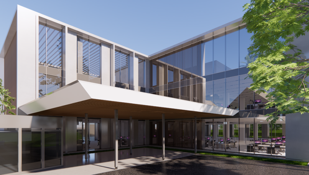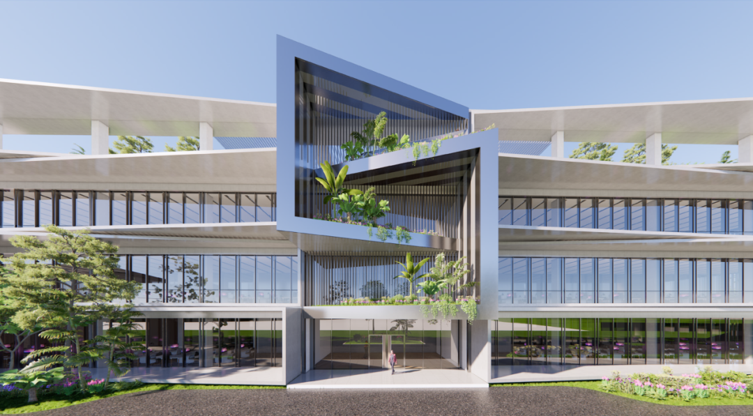 公司总部新大楼的设计基于现有建筑的建筑方法,但以一种新的现代形式进行诠释。 设计师从场地边缘退界出部分空间,以创建一个标志性主入口空间。整体设计以三座立方体建筑为主,构成基本的空间布局形式。连接三个立方体的中央主线与交流区域作为空间秩序中的重要节点,与入口大厅和空间流线巧妙结合。