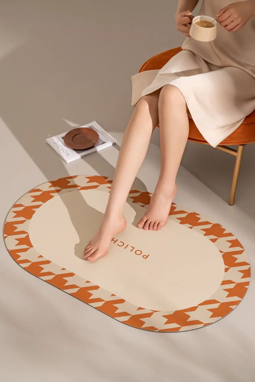△产品底部材质选用天然橡胶,面料选用科技布面料。天然橡胶的特点是环保无味且防滑性能非常出色,科技布面料为无绒面料,打破了传统地垫均为长绒,且科技布面料吸水能力强大非常适用于地垫。宝丽彩地垫可用于浴室,卧室,客厅,入户门口,厨房等。
